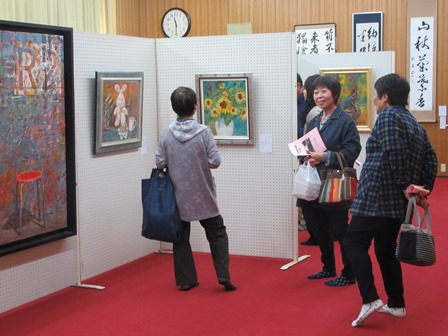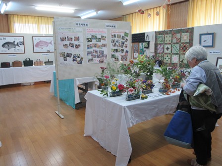 一方、交流センターの中では絵画、書、写真、生花などを展示した文化展、抹茶席や趣味を生かした手芸、工芸作品などの作品展及び健康相談コーナーを催し、たくさんの方が来場されました。