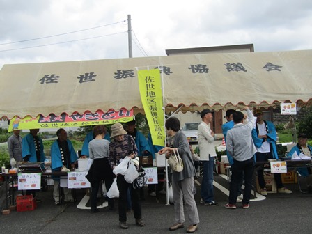 また、交流センター駐車場では、地元有志の皆さんがテント村を開設し、山菜おこわ、割子そば、お好み焼き、ラーメンなどが販売され、訪れた皆さんは舌鼓をうって堪能されていました。