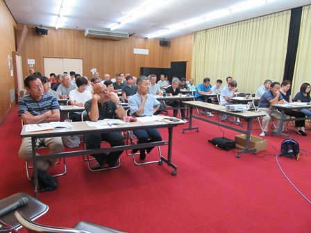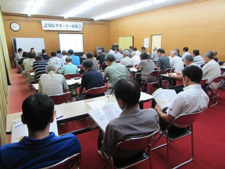 8月22日(水)自治会長・自治会福祉部員を中心に「認知症サポーター養成研修会」を、講師に、雲南市健康福祉部地域包括支援センター保健師武田千恵さん並びにキャラバンメイト(養成講座等の講師役を務めていただく方)の新人の石田さんを迎え、開催しました。