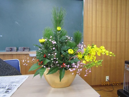 材料は同じでもできあがった作品はそれぞれ個性があり、みんな素晴らしいアレンジ花になりました。良い正月が迎えられたことと思います。