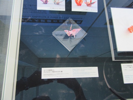また、平成28年5月27日現職のアメリカ大統領として初めて被爆地広島をオバマ大統領が訪問され、出迎えた2人の子どもたちへ大統領から手渡された折り鶴とメッセージも展示されていました。