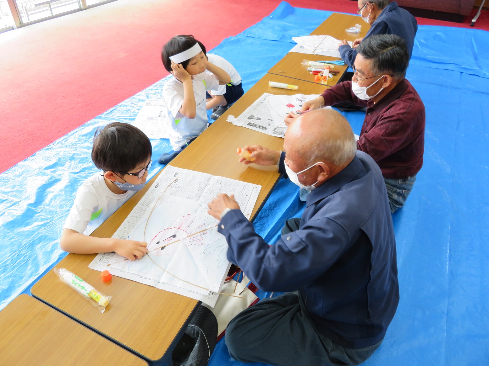 令和2年11月9日(月)佐世連合寿朗会の皆さんの協力のもと、小学1年生と凧作り交流を行いました。