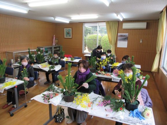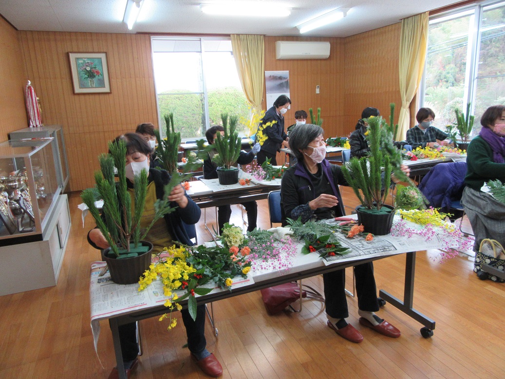 令和2年12月20日(日)雲南市三刀屋町の「石飛生花店」石飛正枝さんを講師に迎え、11名の参加により、生涯学習部事業「アレンジ花教室」を開催しました。